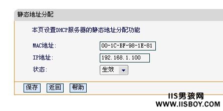 1.进入路由器,然后点击DHCP服务器--》静态地址分配---》添加,如图: