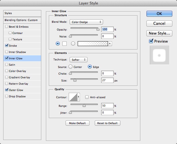 选中内发光,按照下图所示设置相应的参数。