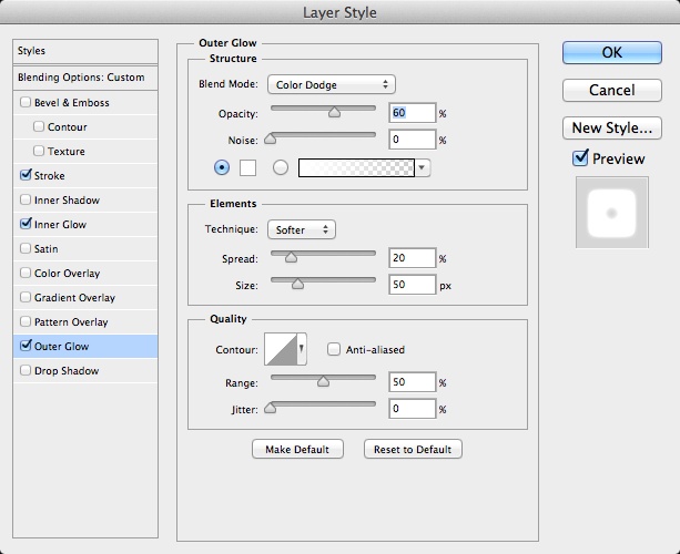 选中外发光,按照下图所示设置相应的参数。