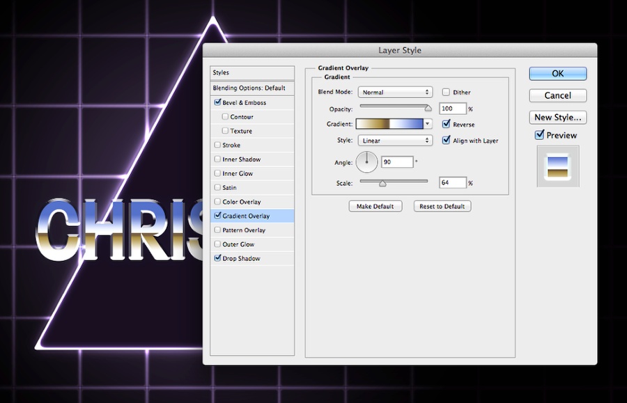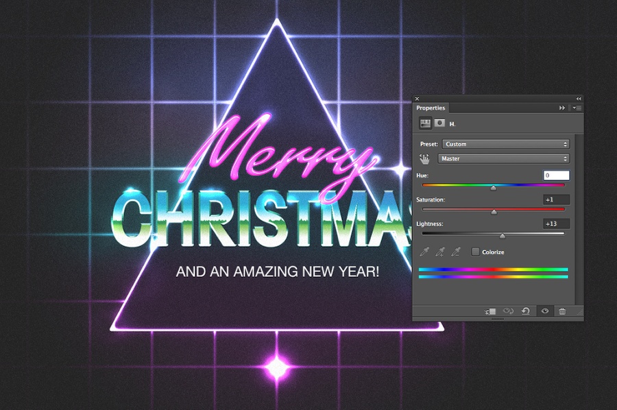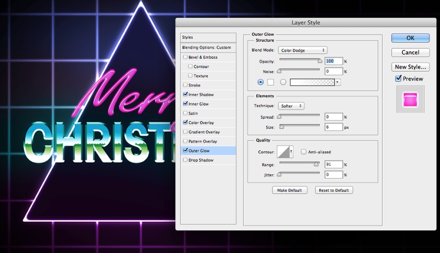 内发光和外发光将三角形后面的光与网格融合在一起。接下来,选用横排文字工具插入文字。
