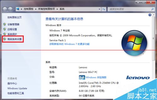 2、打开如图计算机信息界面,再点击左侧控制面板主页下的“高级系统设置”;