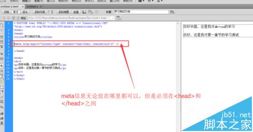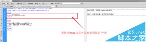 4、下面让我们改正这个错误,在网页编码里面加上声明编码的meta信息