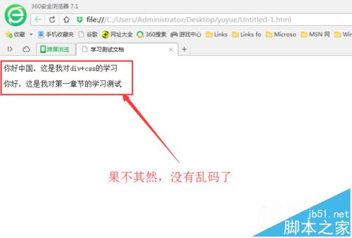2、然后我用360浏览器预览我的代码效果,很遗憾,真的出现乱码了