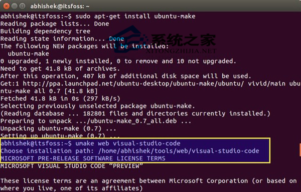 如果不使用Ubuntu Make,也可以通过微软官方下载安装文件。