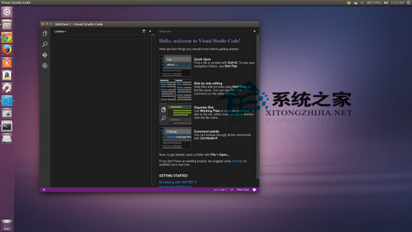 确定之后,安装程序会开始下载并安装。安装完成后,可以发现Visual Studio Code图标已经出现在Unity启动器上。下图是Ubuntu 15.04 Unity的截图: