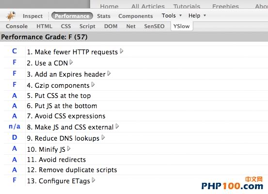除了测量它网页加载的速度, YSlow为您提供一些深入了解,如你可以为提高自己的网站性能做些什么,以及网站的负载性能的不足。