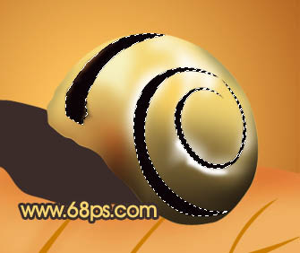 <图5> 5、回到“壳”图层,锁定图层,把前景颜色设置为:#2D2214,选择画笔工具,画笔不透明度设置为:10%,然后把“壳”的暗调部分涂出来,效果如下图。
