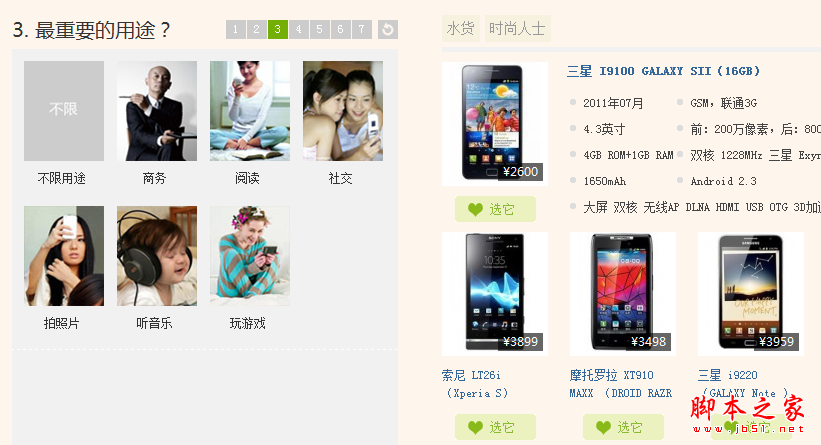 “挑手机”栏目中,我们可以看到这个栏目不仅仅是对用户的“决策阶段”,还包括它的上一级“自身预估”,根据用户自身的喜好,来推荐最适合的手机。