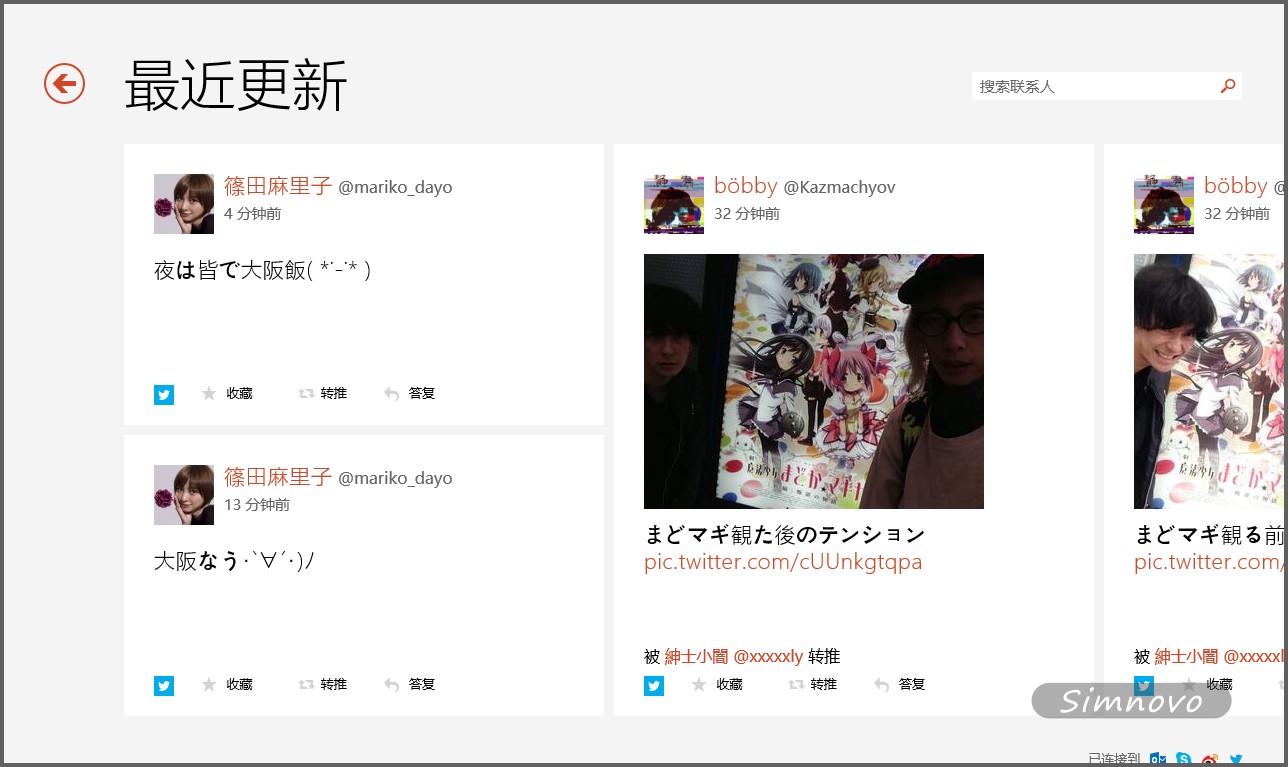 如果你也使用windows 8/8.1和twitter,你可以通过下面的步骤将twitter加入人脉。