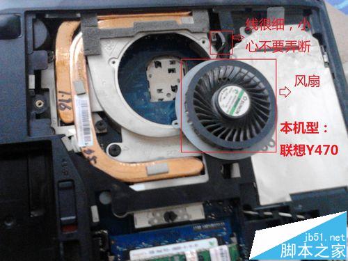 2、用螺丝刀打开后面的壳,并将风扇固定在机身的螺丝拧下来,下图是Z570示意图(G450结构和它一样)和Y470示意图,没把握的话,不要将风扇的线从接口处拉开。
