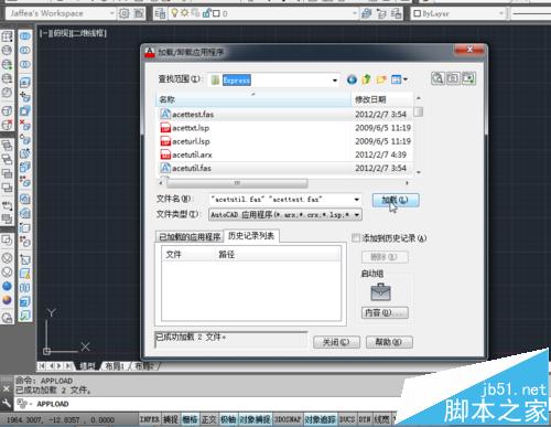 4、同时选中Express文件夹下面的“acettest.fas”以及“acetutil.fas”的两个文件。选中后点击“加载”,左下角会显示“已成功加载2文件”,然后点击“关闭”。