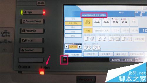 1、复印机无法打印最常见的就是纸盒中没有打印纸了,此时RICOH理光MP5000复印机会发出警报,警示灯也会亮起来,并且有缺纸的提醒。
