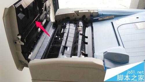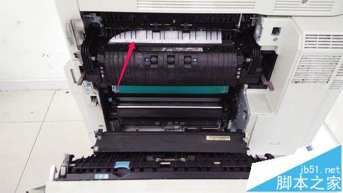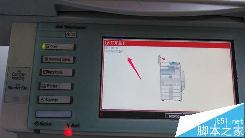 2、根据提示找到复印机卡纸的位置,将卡住的纸清除以后就可以打印了。
