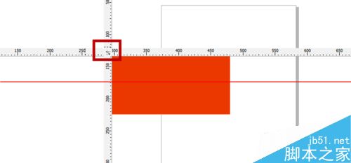5、其实我们来可以自己来调整标尺,寻找标尺的水平与垂直的交叉中点一个按钮,我们只需要按住Shift+所需标尺上按下按钮,并拖动鼠标至工作区中需要的位置释放即可。
