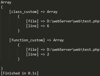 $info['class_'.$name]= array('file'=>$ob->getFileName(),'line'=>$ob->getStartLine());