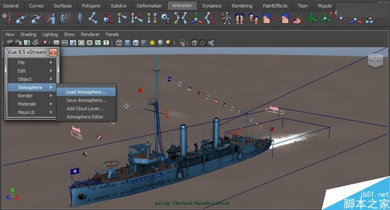 建模-贴图-绑定特效-海洋-照明-vue大气-渲染合成,是制作这个中山舰小样片的基本流程。流程中的两个比较重要的技术点就是:maya中海洋特效的制作,Vue与maya的交互。从画面效果上来看,后期合成的作用也尤为重要。