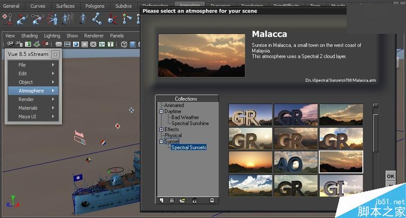 3.选择合适的大气环境。这里我选择SpectralSunsets(光谱日落)。