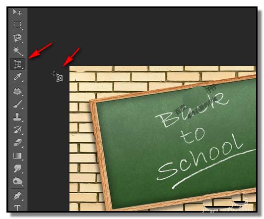 3、点选透视裁剪工具后,鼠标变成了一个+号加一个带节点的框,如下图所示。