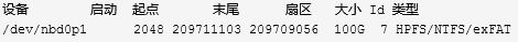 Disk /dev/nbd0:100 GiB,107374182400 字节,209715200 个扇区