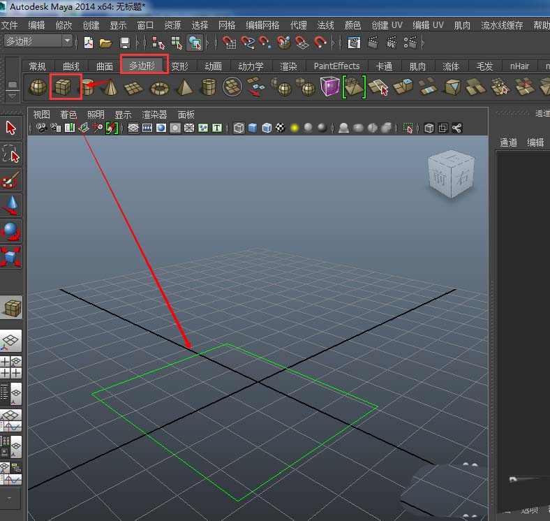 3、这时候我们就完成了非交互式创建的前提设置我们再次点击多边形下的多边形立方体。