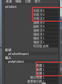 打开物体属性通道盒就可以看到了创建物体的相关信息。