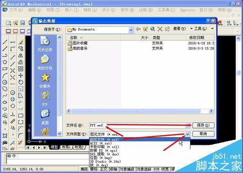 2)在弹出的输出数据对话框中,文件类型选择“图元文件(*.wmf)”,填好文件名,点击“保存(S)”。
