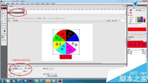 9、到此大功告成,一个点名的flash转盘制作完成,保存,也可导出影片。除了点击按钮也可按空格键启动转盘。
