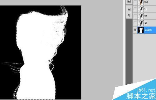 6、按着Ctrl键,点击蓝副本通道,这时就形成一个选区,如图示: