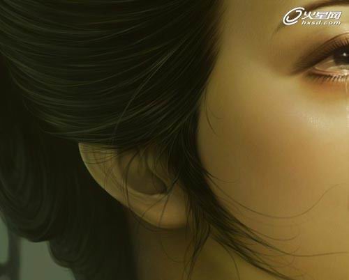 画到这里脸部基本就画完了。要注意的是每个感官的质感,画泪水的时候要注意的是,有些人认为泪水是白色的,但其实泪水是无色透明的,不要拿着白色直接画上去,那就不是泪水了。画泪水注意跟着脸部结构走。(图19、图20)