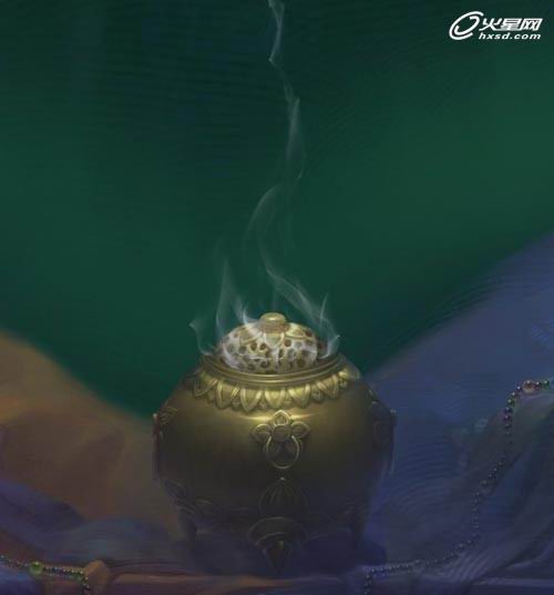 接下来这步,就是把香薰画了,画法同画头饰,烟是用笔头刷的。(图33)