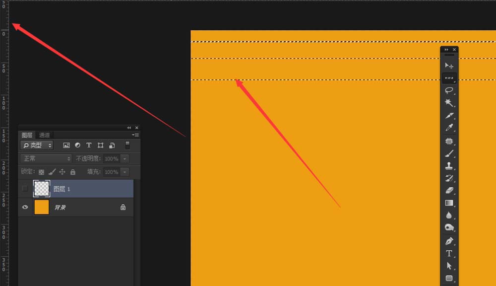 5、画出一个单行选区(按住shift键可以画很多条),每条单行可以隔5mm