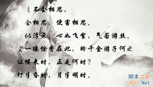 2、然后我们选择“文字工具” 打出你要制作的文字 颜色字体根据你的喜好来定 这里小编输入“平生不会相思,才会相思,便害相思。。。。。。“然后按快捷键”CTRL+T“调整字的大小 (不要在字体工具使用的情况下用此快捷键)