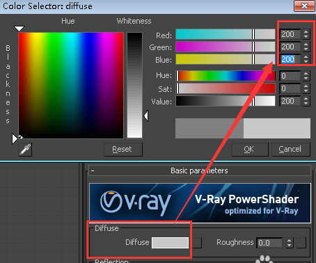 可以看到增加的光功率使图像更亮,并且还增加了照明的对比度。现场仍然看起来很黑。我们可以进一步增加光功率,但是这会使直接照亮的地区太多,并且会稍后减慢GI计算。所以,我们需要使【材质】增加亮度,而不是增加光功率。