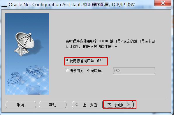 6.选择端口号,使用标准端口号1521,下一步