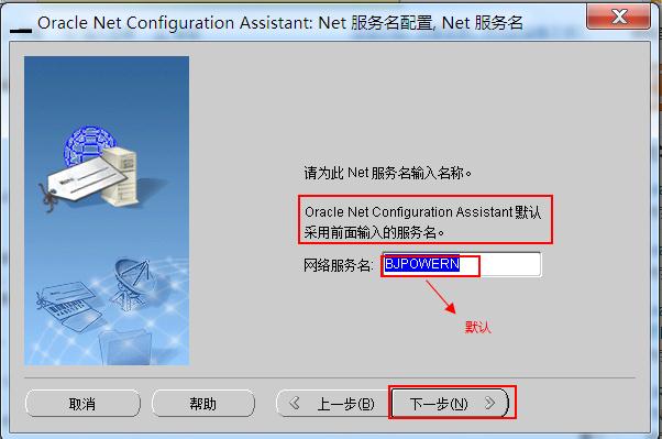 11.网络服务名,默认(和之前的数据库名一样),下一步