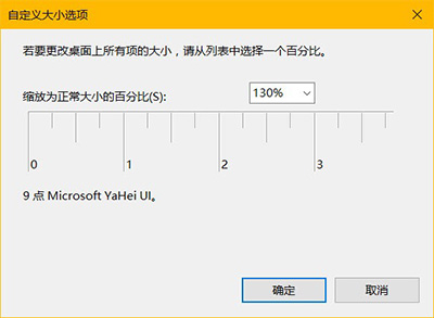 此时可以在弹出窗口的下拉列表中选择一档默认缩放值,再手动微调至适当的百分比即可(下方有效果预览)。Windows 10 可能会提示你使用预设值,不必理会这个警告,注销系统之后就会看到新的缩放效果。