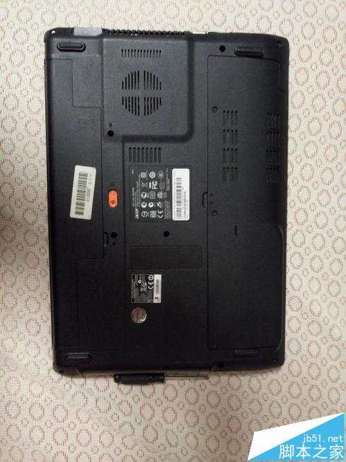 1、先将笔记本翻到背面,如图所示,左侧是笔记本电源 右侧是更换内存和硬盘的地方。右侧需要用十字螺丝刀打开
