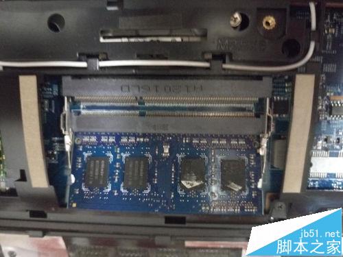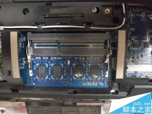 4、拆下后可以看见下面还有一个内存条,可以用同样的方法将其拆下,都拆下后就可以看见如图三的内存接口了