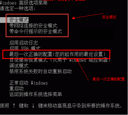 系统配置当出现错误时经常引起很多莫名的电脑故障,这时在开机时按F8在出现的的Windows高级选项菜单时,这时选择“最后一次正确的配置(您的起作用的最近设置)”此项,然后确定即可。试试是否能正常的进入操作系统?