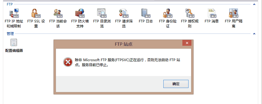 提示:除非 Microsoft FTP 服务(FTPSVC)正在运行,否则无法启动 FTP 站点。服务目前已停止。