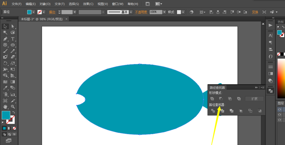 3、绘制一个椭圆形在前面,然后去掉顶部作为嘴巴。