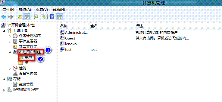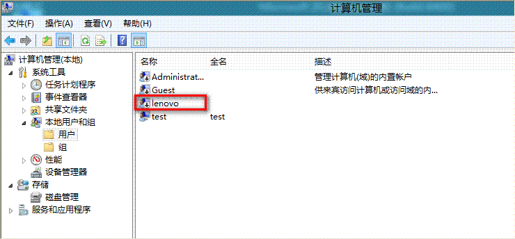 图中那个lenovo账户为管理员账户,test为标准账户