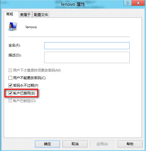 5. 可以看到该账户已经被禁用;