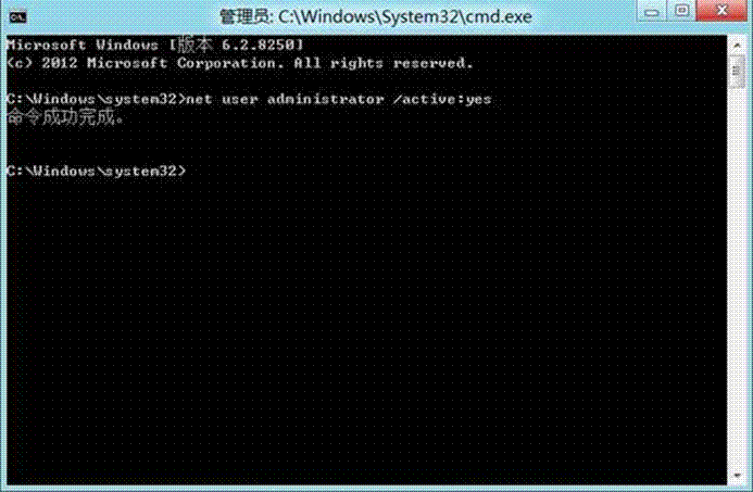 输入net user administrator /active:yes,重启电脑后即可开启administrator账户。