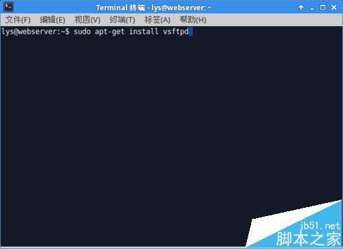 打开"终端窗口",输入"sudo apt-get install vsftpd"-->回车-->安装完成。