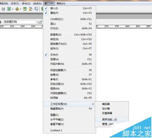 2、在开始菜单栏中找到窗口菜单选择工作区域布局,如下图所示: