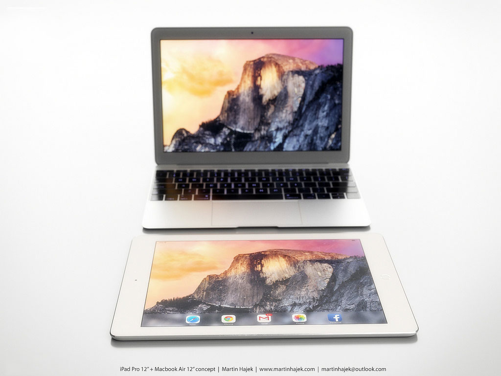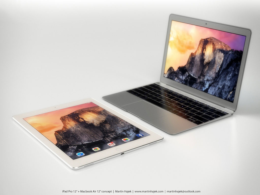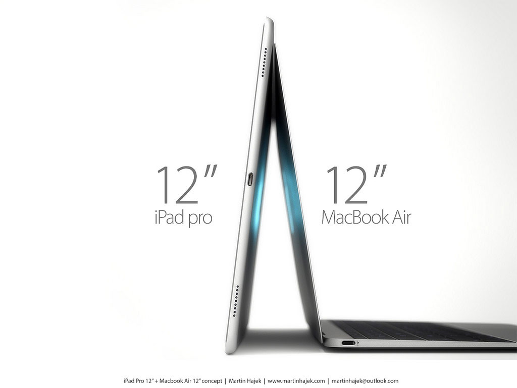 传闻称苹果将在一季度发布12寸MacBook Air,概念设计师Martin Hajek再次发布了3D渲染,这次是iPad Pro与12寸MacBook Air的对比图。下面就一起来看看吧