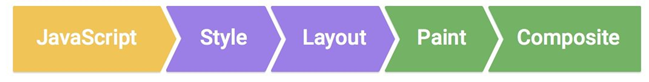 从左到右依次是JS,样式,布局,绘制,渲染层合并。