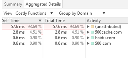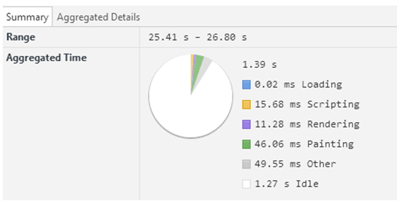 上图可见加载时间0.02s,脚本15.68s,渲染时间11.28s,绘制时间46.06s,其他时间49.06s,空闲1.27s时间。