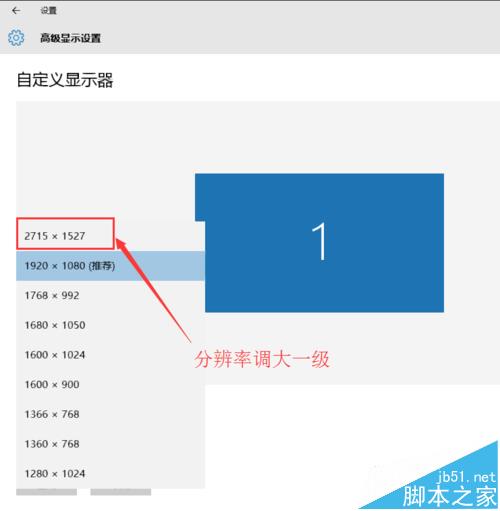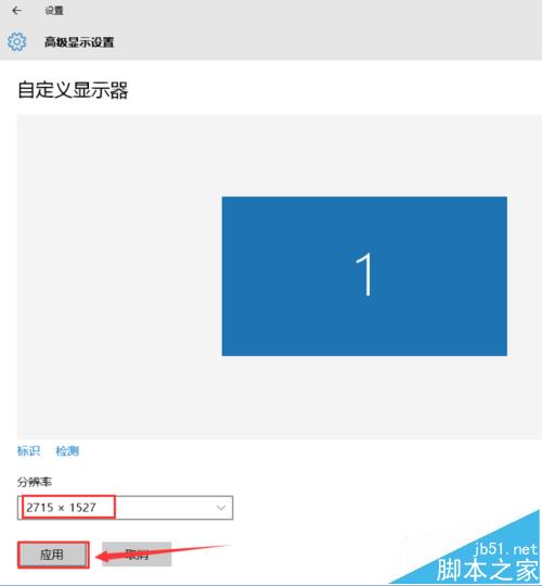 3、将分辨率调高一级(或者降低一级),点击"应用"